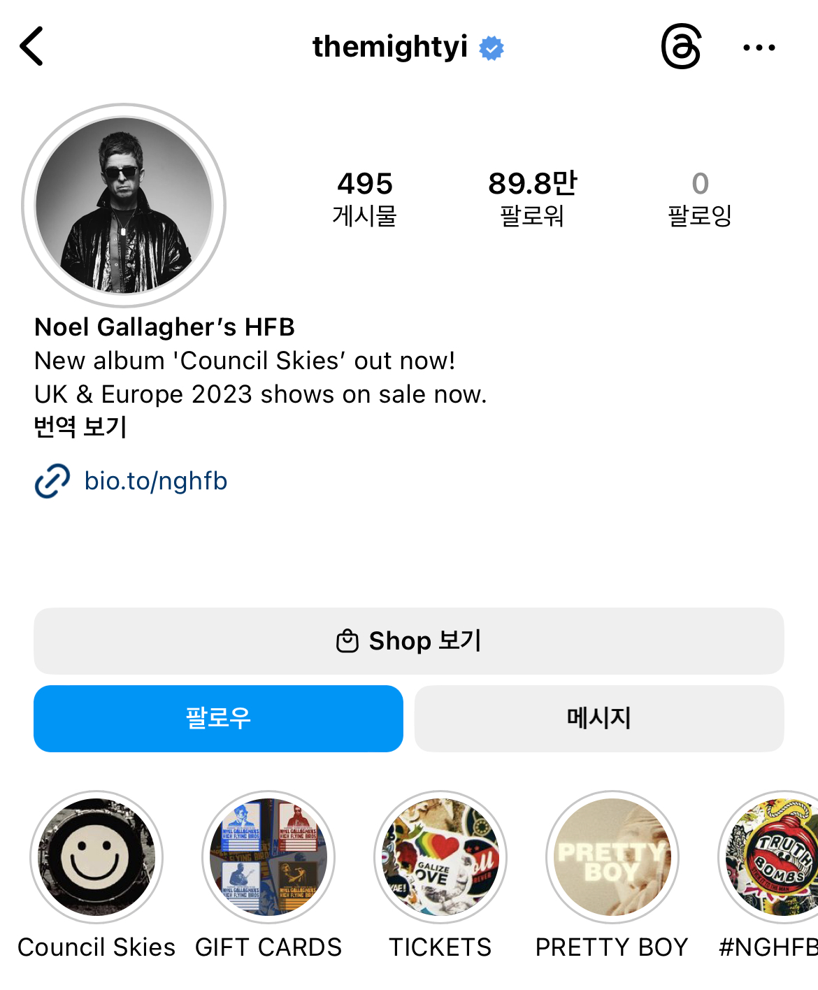 노엘 갤러거 하이 플라잉 버즈 내한공연 예매 사이트